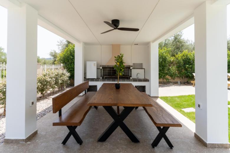 Outdoors, the villa delights with its private pool (5×8 meters) surrounded by sun loungers for sunbathing and relaxation. After a refreshing swim, rinse off in the outdoor shower before retreating to the shaded sitting area, ideal for afternoon reading or simply soaking in the peaceful surroundings. The shaded BBQ area is the ultimate spot for enjoying fun-filled BBQ nights with friends and family.