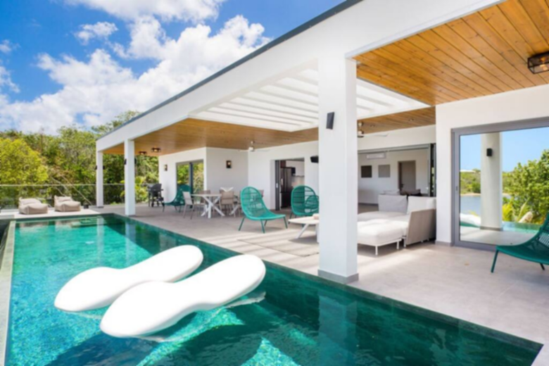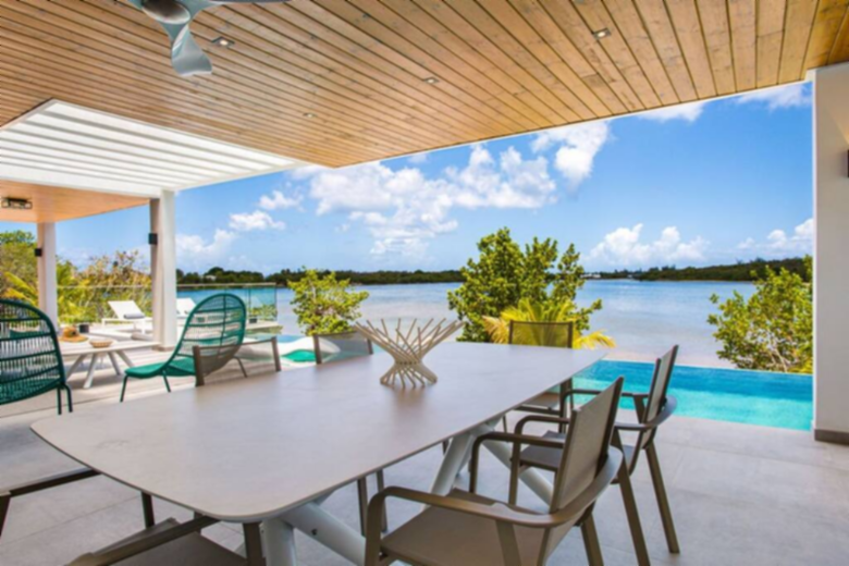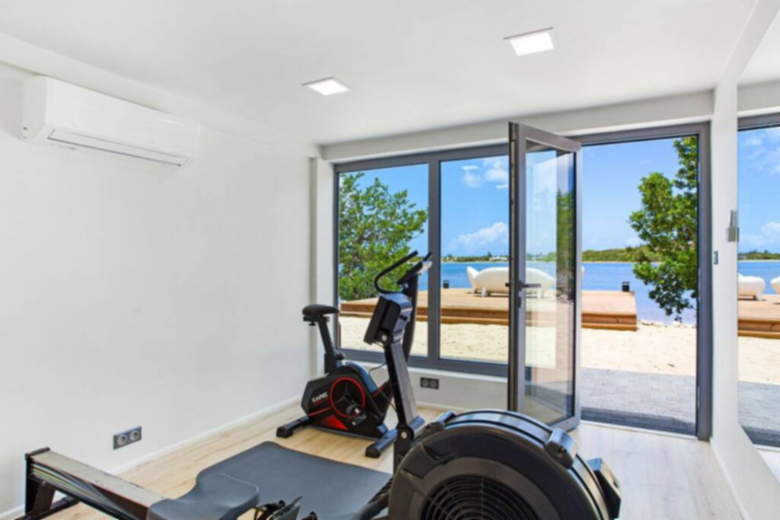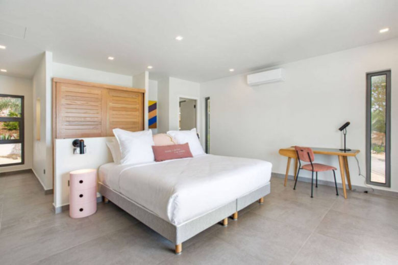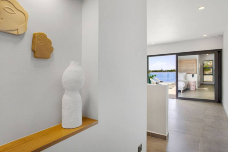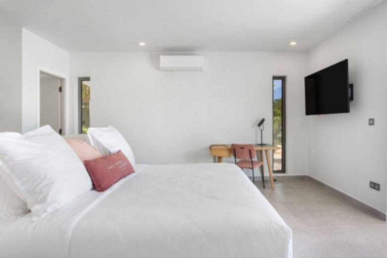 Enjoy is a large two bedrooms villa, with its full private bathroom, plus an outdoor shower each, air conditioning, smart TV, 180cm bed and a safe inside of the closets. The bed linen provided is LINVOSGES, a high-quality linen from France. A spacious air-conditioned lounge area, with smart TV and SONOS audio system. A very well equipped and large kitchen with a large oven, microwave, dishwasher, fridge and Nespresso machine. Spacious laundry room with washer and dryer. On the outside area, a large and partially covered terrace, with fans, SONOS audio system and a barbecue, where you can admire the endless views and spend the time on the salted infinity pool. An air-conditioned fitness salon, and besides all that next to the lagoon, a deck over the water where you can appreciate the magic of the place.