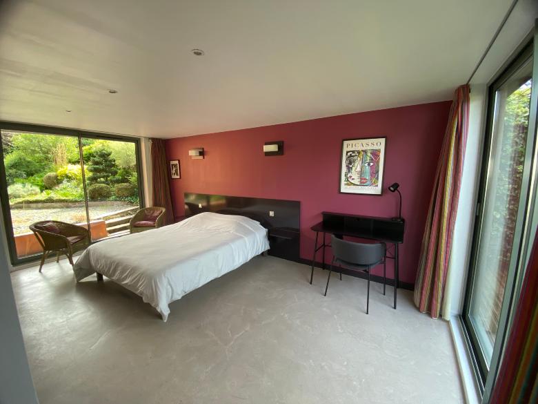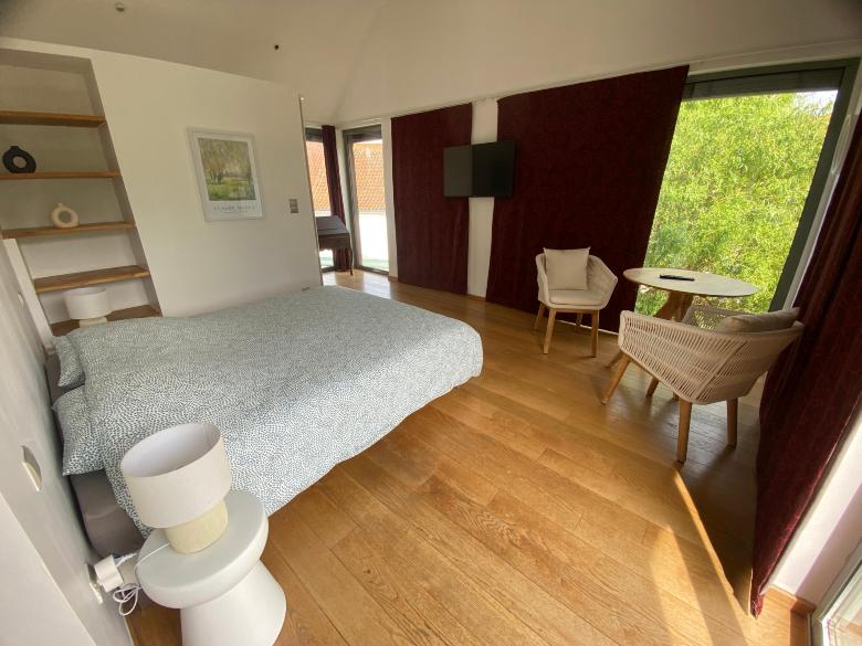 Bedroom with a bed (160 cm), a private bathroom/toilet, a desk and a connected TV. The Cézanne room is located on the first floor of the Villa.