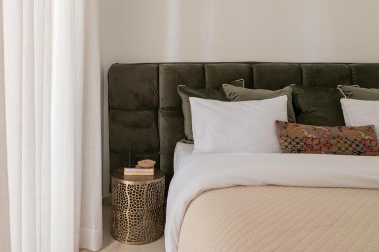 Designed on two levels, with independent entrances for added privacy and autonomy of the floors, the Villa features on the ground floor two ensuite bedrooms with king size bed, refrigerator, sea-view balcony and all modern amenities overlooking the enchanting surroundings, a spacious living room with unobstructed sea views, a fully equipped kitchen with additional storage room with modern equipment as well as a shared w.c. The first floor consists of three ensuite bedrooms with king size beds, refrigerator and all modern amenities and a spacious, lavish living room with large shaded balcony with riveting views of the sea, the pool and the surrounding lush landscape for moments of absolute peace and relaxation. The interior decoration embraces high quality furniture carefully selected for absolute harmony with the colours of nature allowing guests to immerse themselves in the comforts and luxury generously offered by the unique Villa Bala. The handmade objects and very unique exhibits that decorate the interiors in combination with the incomparable beauty and serenity of the surrounding area create a result of high aesthetics.