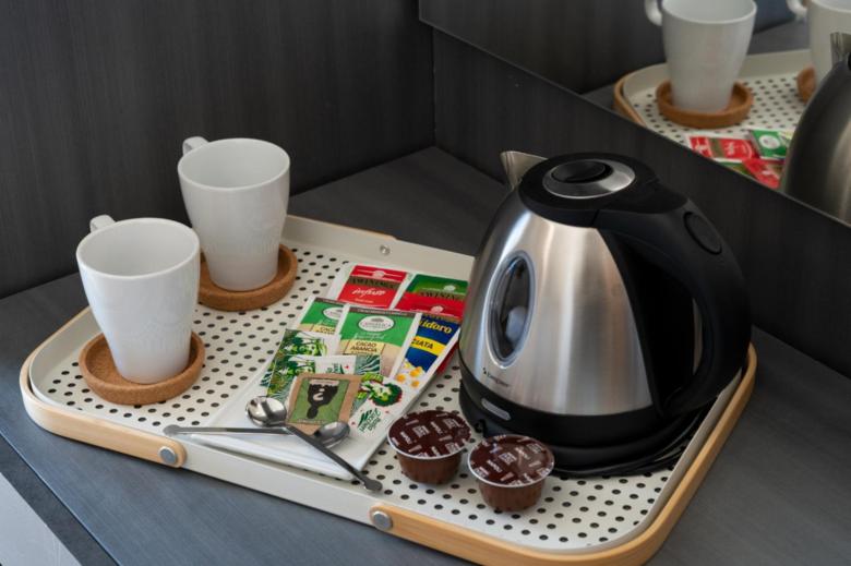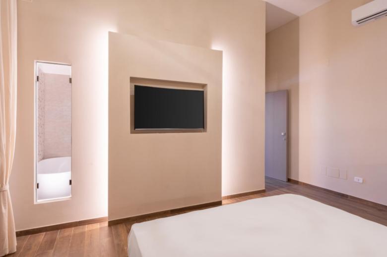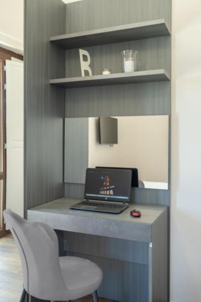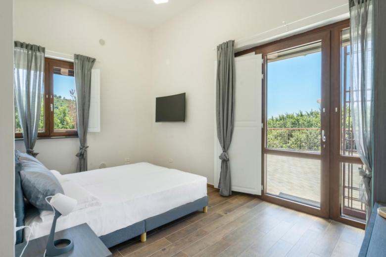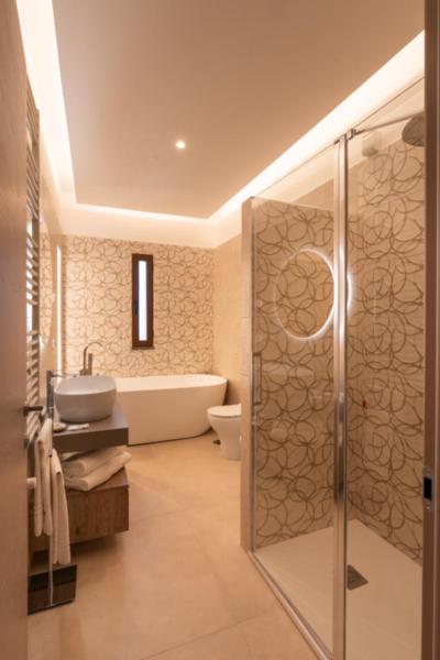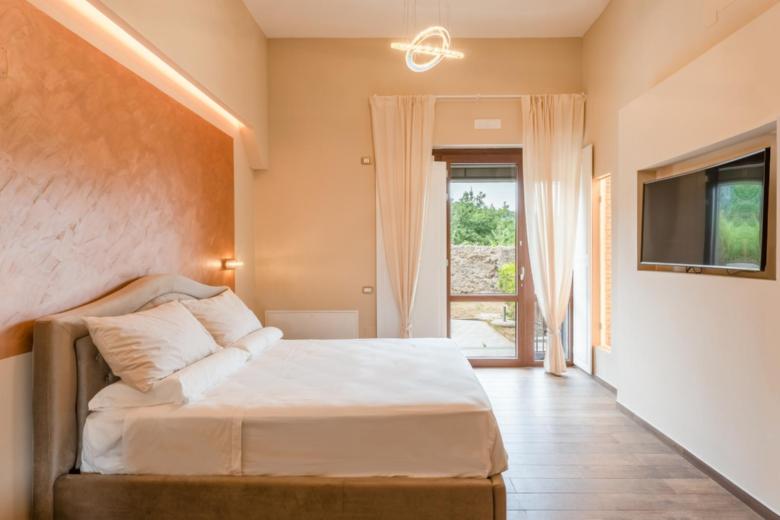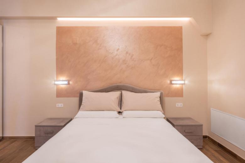 La camera “Deluxe” di circa 17 mq. nelle sue sfumature di Rosa tenue, anch’essa dotata TV 48” Samsung full HD curvo, aria condizionata, bollitore elettrico su scrittoio con tisane/thè oltre alle cialde del caffe per la macchina espresso nella zona cucina; Bagno in camera di circa 4 mq., con box doccia 70 x 70 cm.