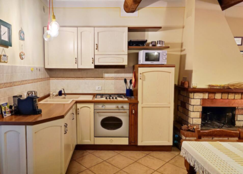 Private entrance on the ground floor, patio with table and chairs where you can have lunch and dinner outdoors. Kitchen equipped with oven, microwave, hob, kettle, coffee machine, dishwasher.