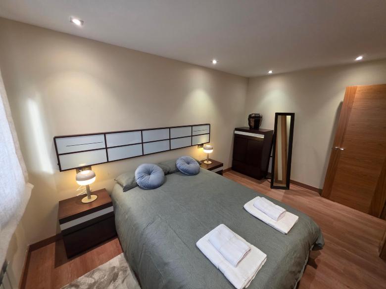 Se trata de un gran piso de 5 dormitorios dobles matrimoniales (uno de ellos con baño en suite y con un nido transformable en matrimonial), salón, cocina, y 3 baños en total incluyendo el situado en la anterior habitación mencionada.