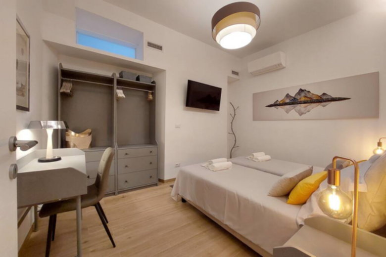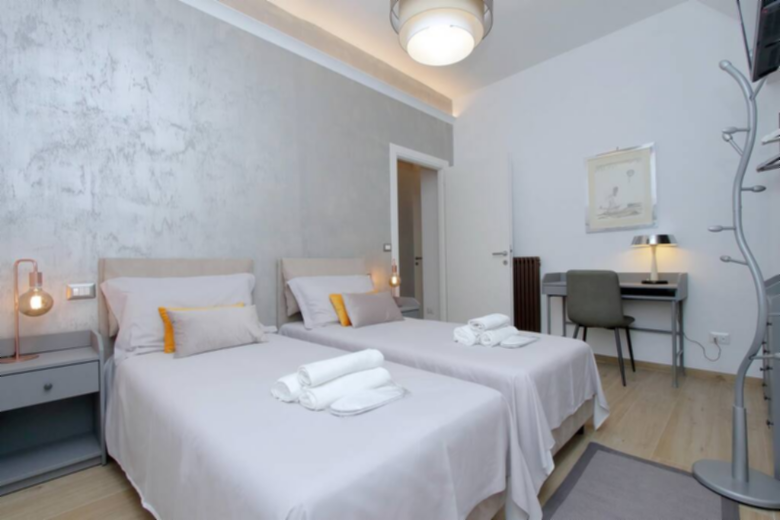 In one of the most exclusive areas of the city: the Aventino/San Saba district, a newly renovated apartment offering all comforts including a sophisticated air recirculation and air conditioning system. Composed of two double bedrooms, two bathrooms and a large living room consisting of a fully equipped open kitchen also with washing machine, dishwasher, Nespresso coffee machine, etc., a sitting area with double sofa bed and a dining area. Equipped with an independent entrance, it is located a few minutes walk from the Circus Maximus, the Colosseum, the Circus Maximus, the Mouth of Truth, the Roman Forum and the Aventine Hill. Linen, towels and courtesy kit are included. It provides an airport shuttle service for a fee. The apartment can accommodate up to 6 people.