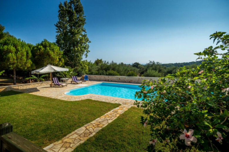 Villa Verdi will be the perfect summer home as it is surrounded by a 6,000 sqm fenced garden with olive trees, fruit trees and an enormous swimming pool (15x5 m) for the exclusive use of its guests. Even though you will feel away from everything, in your rural paradise, Villa Verdi is only 450m away from Vasilikos shopping street and less than 10 minutes away, by car, from some of the most naturally beautiful beaches.