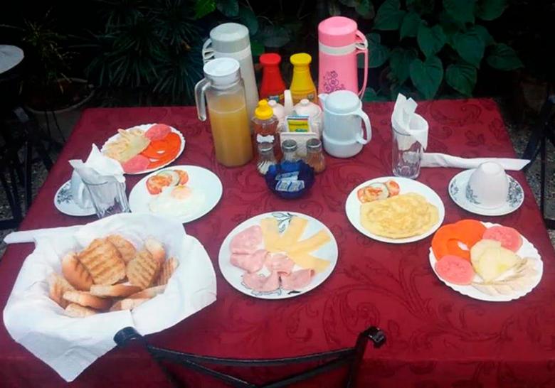 Gastronomic service 1.- Bar: coffees, teas, waters, soft drinks, beers and cocktails (cubalibres, mojitos,...) 2.- Breakfast: a good breakfast (CONTINENTAL type) that will allow you to start the day full of vitamins and energy. We recommend booking it together with the accommodation. 3.- Dinner: home cooking, Creole flavors and fresh products (seasonal and market). Specialty in fish and shellfish, and pork. Very attractive prices.