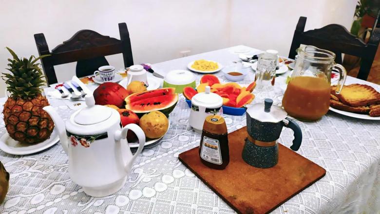 Breakfast When you are staying here, you can wake up with a delicious breakfast waiting for you. It is a continental breakfast, an excellent way to start the day off right. Ecological (as far as is reasonable, we avoid industrial products), healthy (with seasonal tropical fruits and natural juices) and generous (coffee or cocoa. Milk, bread or toast, butter and jam, fruit, juices, eggs al taste, cheese, ham or similar, cookies or pasta, … We recommend you book it together with the accommodation.