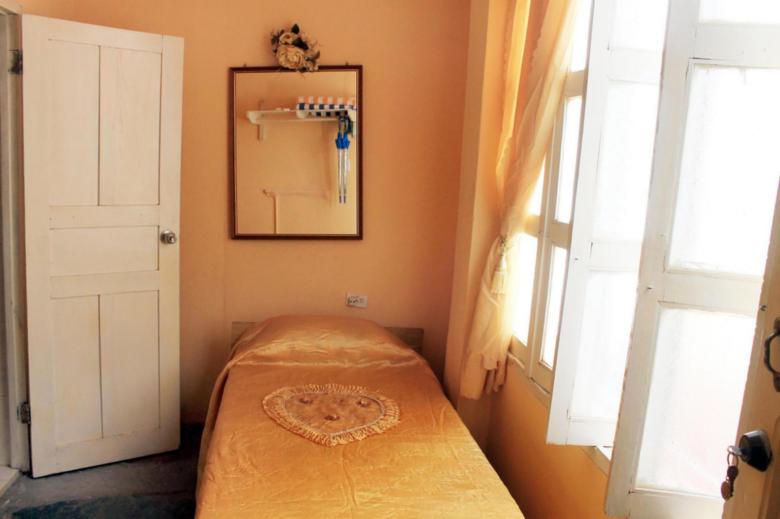 Home Typical colonial-era house, with a simple façade and spacious, fresh interiors. Rent two rooms with bathroom and air conditioning. Room 1 has two single beds and room 2 has a double bed and a single bed. They have air conditioning, fan, 110V and 220V current and both are on the ground floor (so they are suitable for older people, families with small children or people with mobility problems).