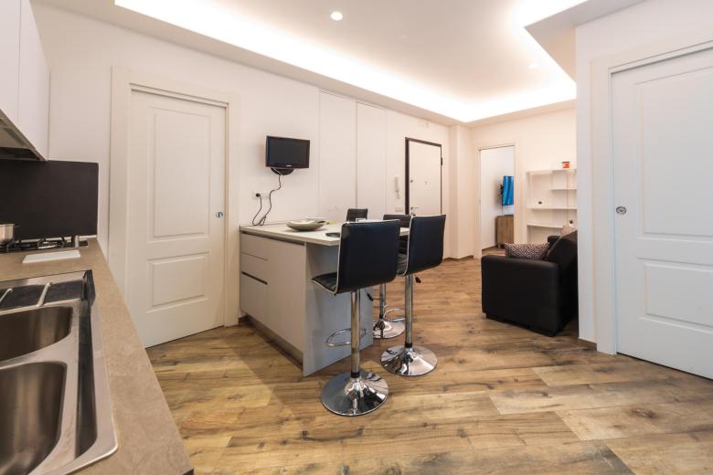 In the heart of Salerno, just a five-minute walk from the lively Corso Vittorio Emanuele and only two hundred meters from the new courthouse, Sky Apartment Salerno is the ideal choice for anyone seeking a comfortable, independent stay in a prime location. This modern 60 m² apartment, bright and elegantly furnished, accommodates up to three guests and is perfect for both leisure and business trips.