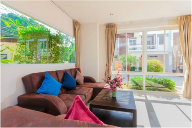 Our complex is a closed private territory. Each townhouse has three bedrooms, two bathrooms, a fully equipped kitchen, a private sun terrace. Some townhouses have their own patio for relaxing. On the complex area has a large share swimming pool. This is a cozy place for a quiet family accommodation.
